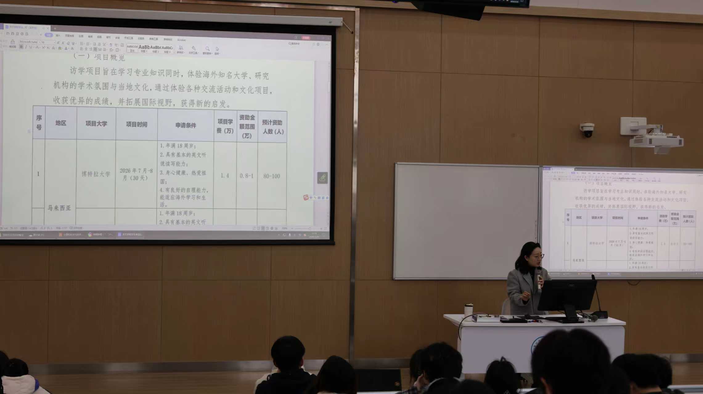 为深入推进“一带一路”教育交流合作,进一步拓宽学生国际视野,丰富国际化交流体验,提升学校国际化人才培养质量,近日,我校全面启动2026年暑假及秋季出国境交流交换项目报名工作。为响应学校号召,计算机科学与技术学院于3月26日举办2026年国际交流项目讲解会,为有志于海外深造的学子搭建起通往世界名校的桥梁。学院党委副书记郑乐主持,国际交流合作处吴优亭老师出席。本年度暑假及秋季出国境交流交换项目汇聚了11所海内外知名高等学府,涵盖了欧、亚、澳等多个地区的顶尖学术机构。包括博特拉大学、马来亚大学、奥克兰大学、悉尼大学、剑桥大学、威尔士三一圣大卫大学、世翰大学、高丽大学、布达佩斯商业大学、南洋理工大学(